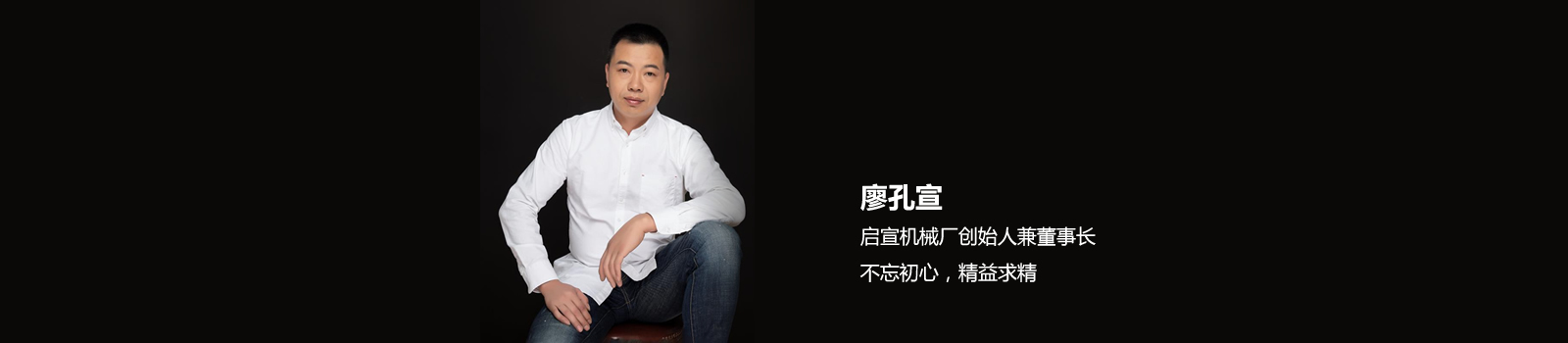 • 廖孔宣-瑞安市啟宣機械有限公司創始人兼董事長。 1989年在溫州梧田撕裂膜廠做工,2005年自己創辦了鵬博機械廠,誠信經營,不忘初心,精益求精。之后機械廠正式改名瑞安市啟宣機械有限公司。